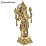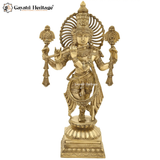 This Brass Krishna Statue by Gayatri Heritage depicts the Divine Flute Playing Bal Gopal Idol. Crafted in brass, this statue captures the essence of the beloved deity, perfect for any Hindu household. Bring the blessings and joy of Krishna into your home with this intricately designed statue.
